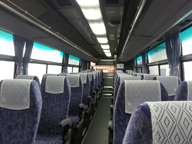 普通の観光バスでトイレ付き。